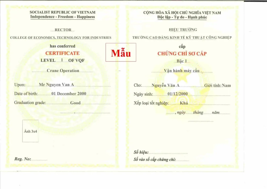 - Sau khi hoàn thành, học viên đạt yêu cầu được cấp chứng chỉ sơ cấp Vận hành máy cẩu.